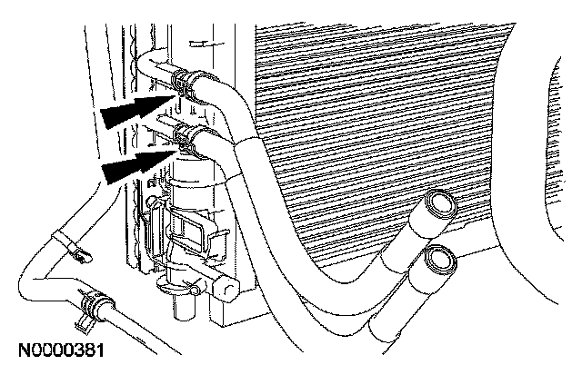 10. Disconnect the fluid cooler hoses from the fluid cooler.