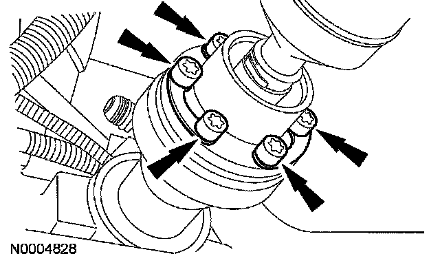 6. NOTE: Tighten the driveshaft flange bolts in a star-pattern to correctly seat the front driveshaft flange.