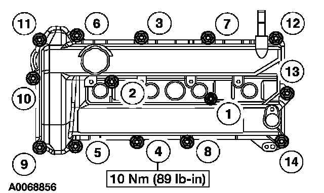 2. Install the valve cover and bolts. Tighten the bolts in the sequence shown.
