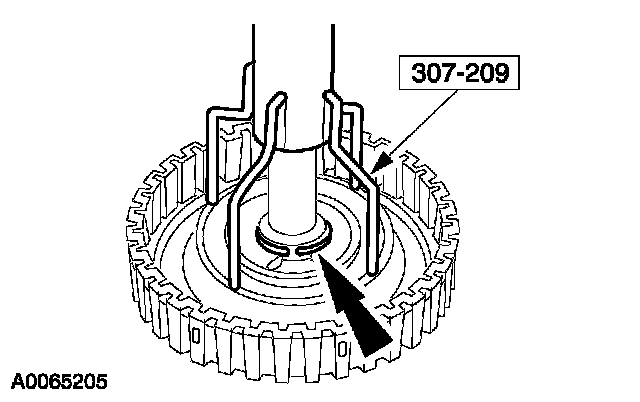 7. Using the special tool, install the forward clutch balance piston snap ring.