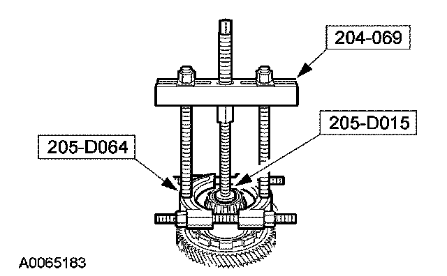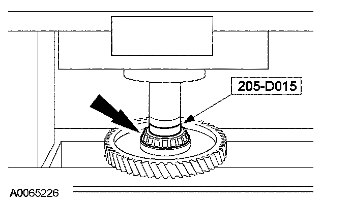 2. Using the special tool and a press, remove the left-hand side transfer shaft gear bearing while separating the gears.