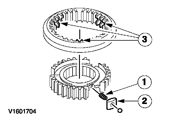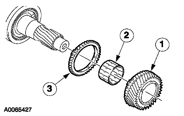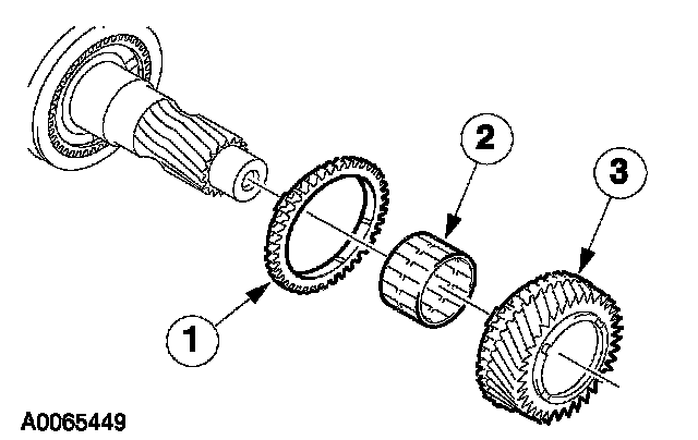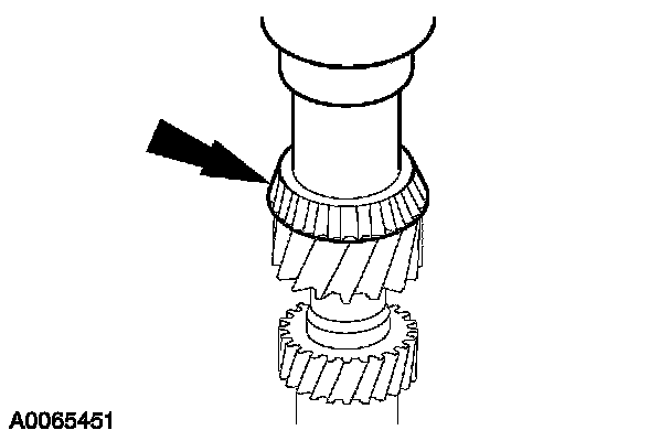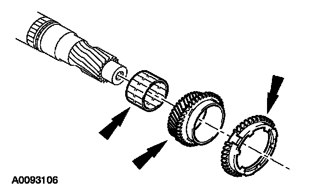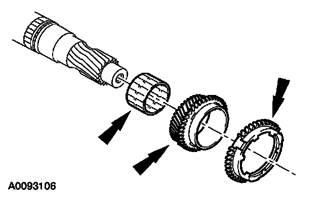 ^ Inspect the synchronizer ring, third gear, and the needle bearing for wear or damage. Install new components as necessary.