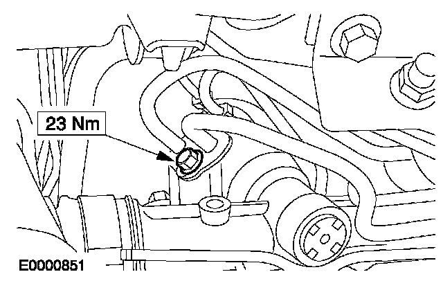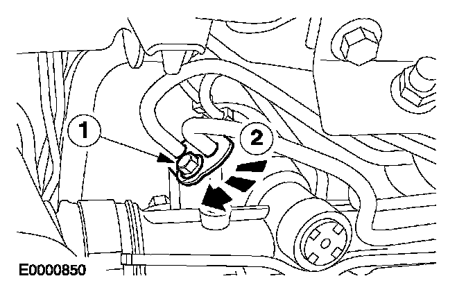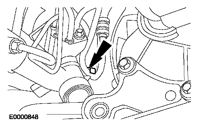 - Rotate the power steering line clamp counterclockwise and install the bolt.
