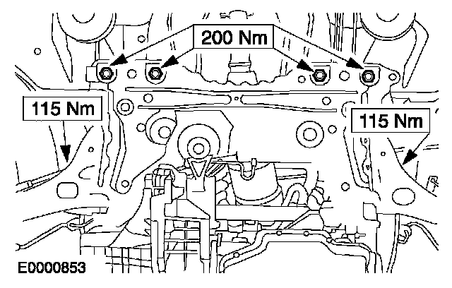 4. CAUTION: While tightening the crossmember bolts, make sure the crossmember does not move.
