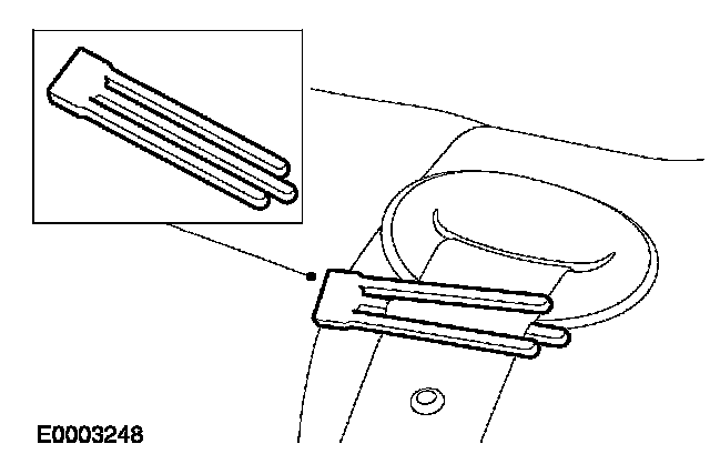 2. CAUTION: Make sure a webbing retainer is fitted at least 200 mm towards the safety belt retractor from the webbing stop.
