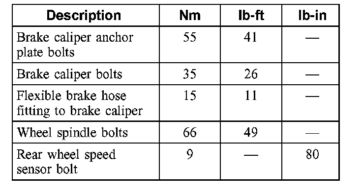 Torque Specifications, Rear