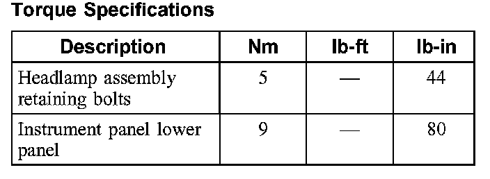 Torque Specifications:
