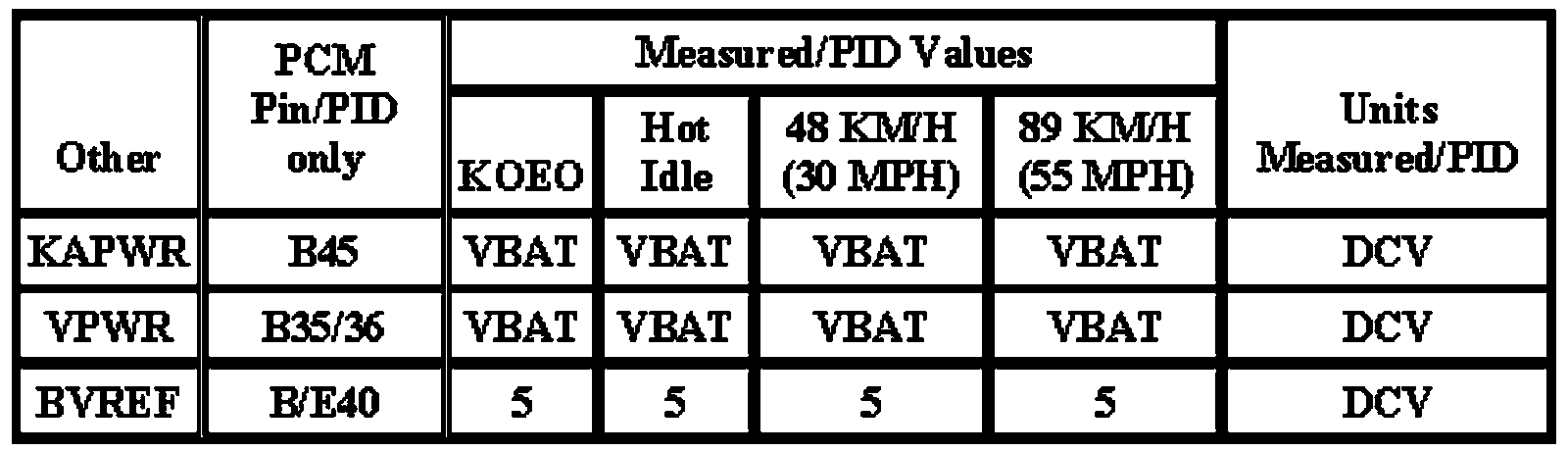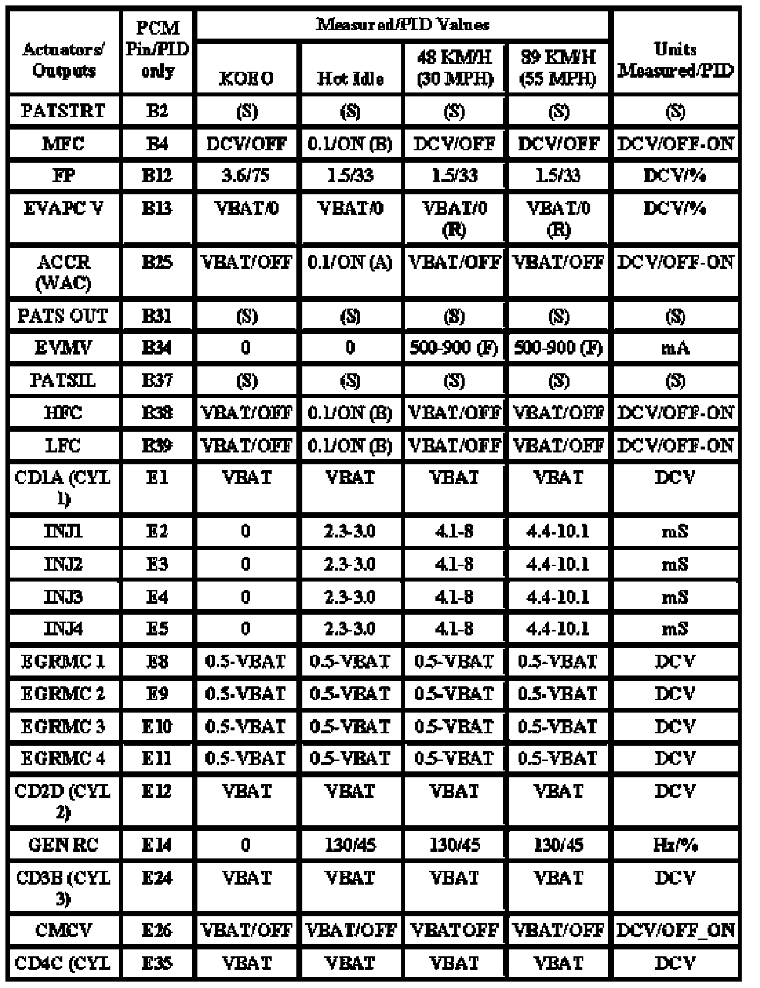 Note: All generic OBD readings under no load (PARK or NEUTRAL).