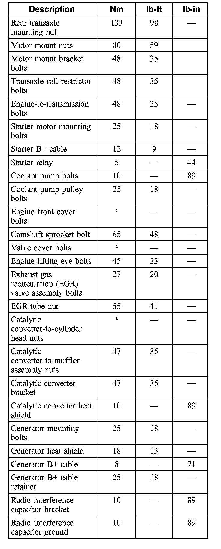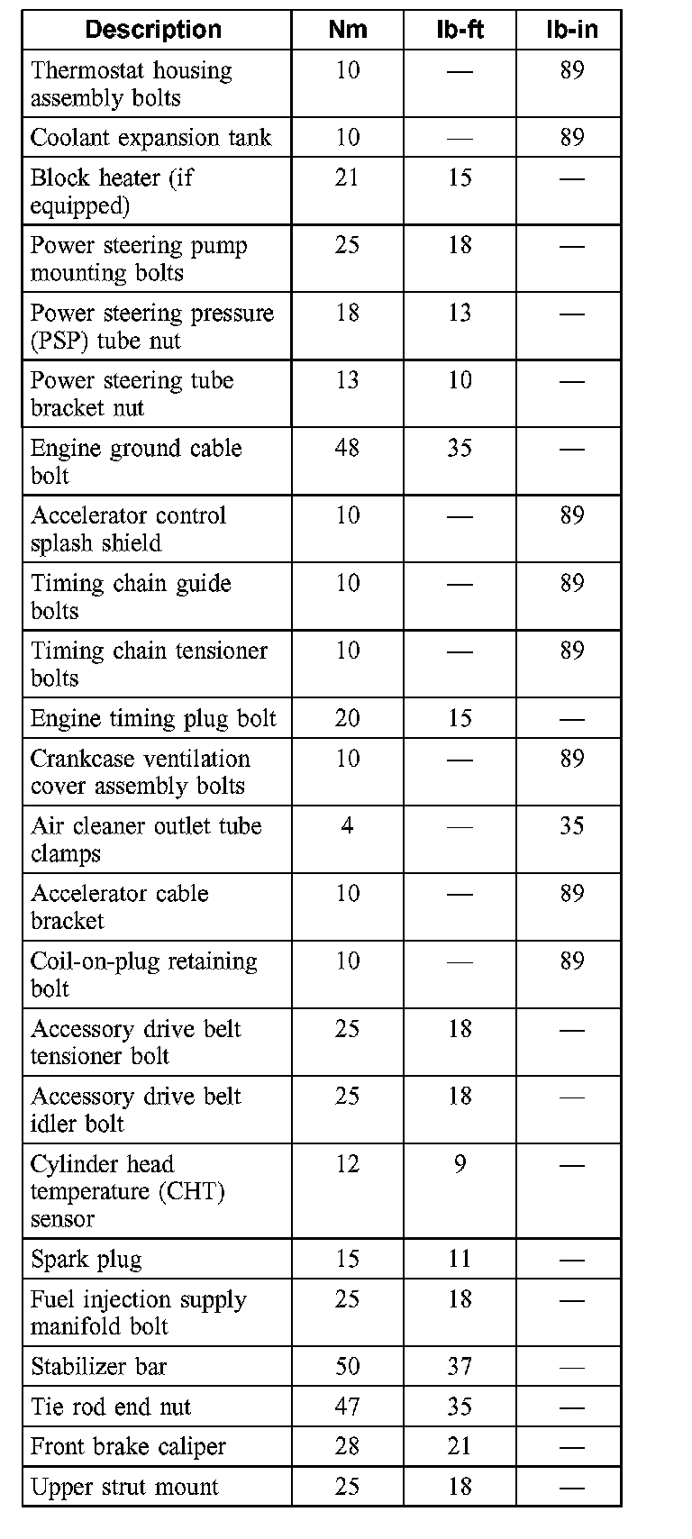 Torque Specifications