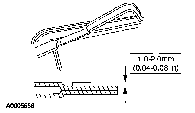 Trim the remaining urethane adhesive on the pinch weld. The urethane adhesive must be smooth and free of cuts and contamination after trimming. Avoid touching the urethane surface after preparation.