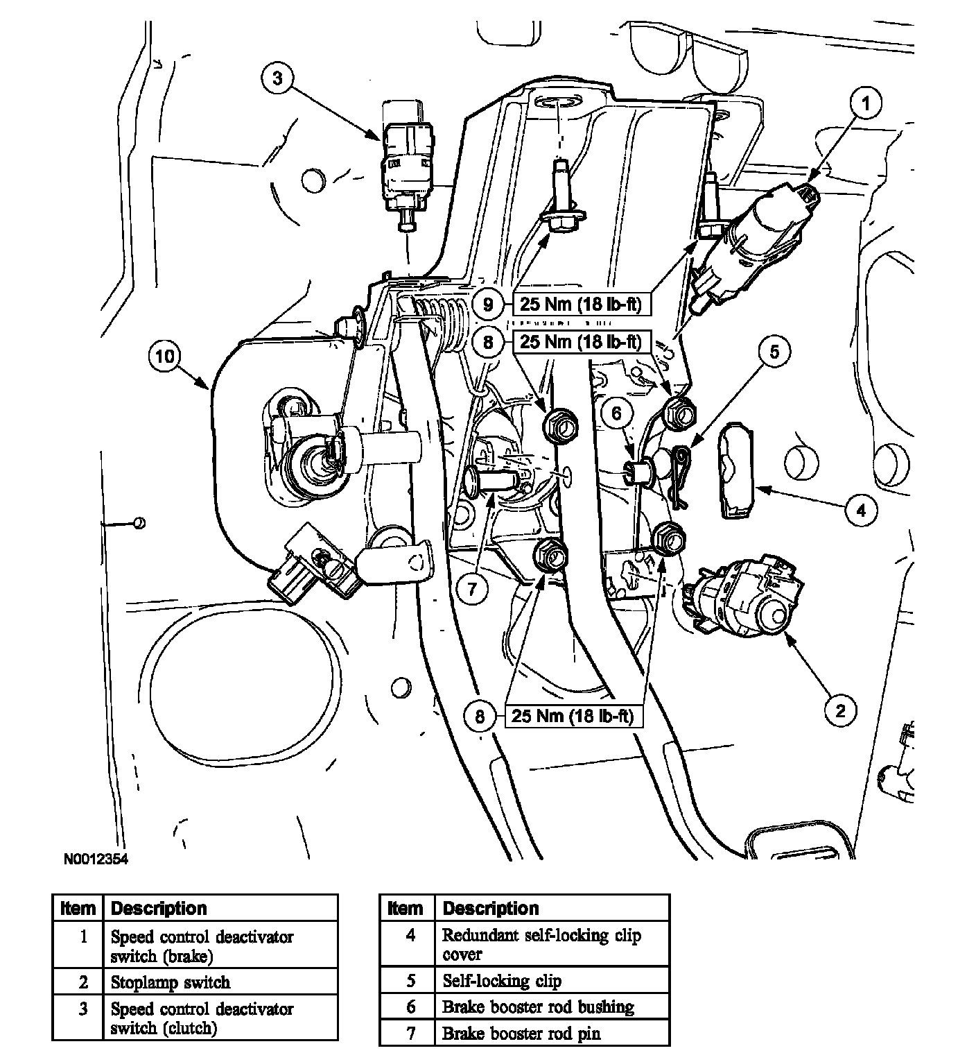 Brake Pedal and BracketNOTE: The manual transmission pedal assembly is shown, the automatic transmission pedal assembly is similar