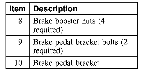 10. Remove the brake pedal bracket assembly from the vehicle.