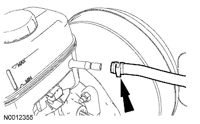 6. Disconnect the clutch pedal low pressure hydraulic hose from the master cylinder reservoir.