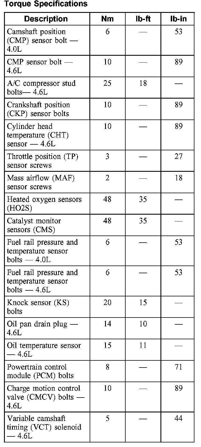 Torque Specifications: