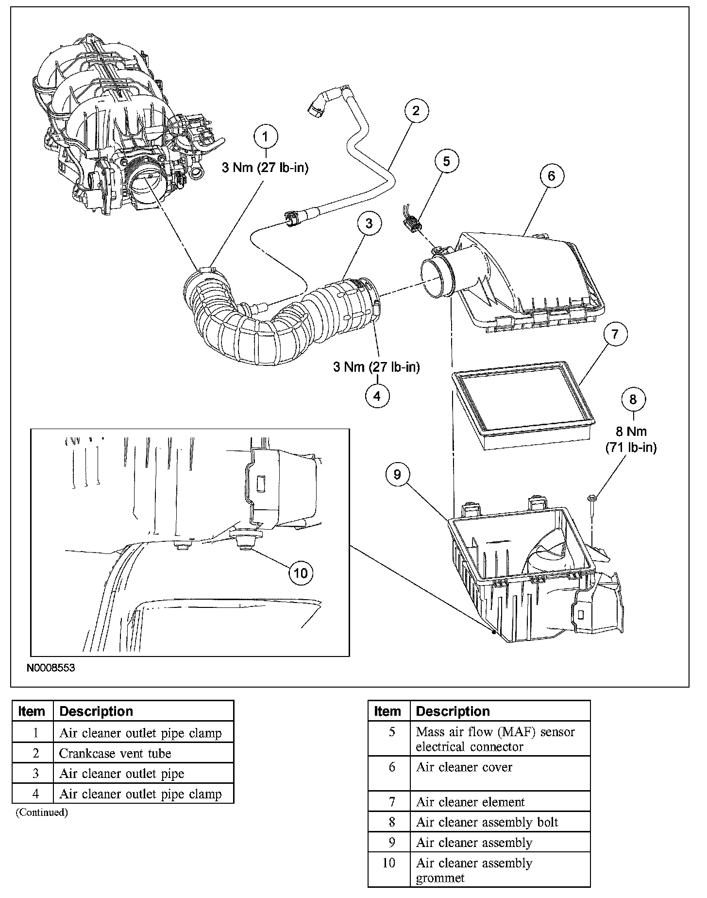 - To install, tighten to8 Nm (71 lb-in).