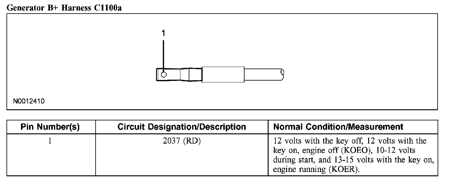 Generator B+ Harness C1100a: