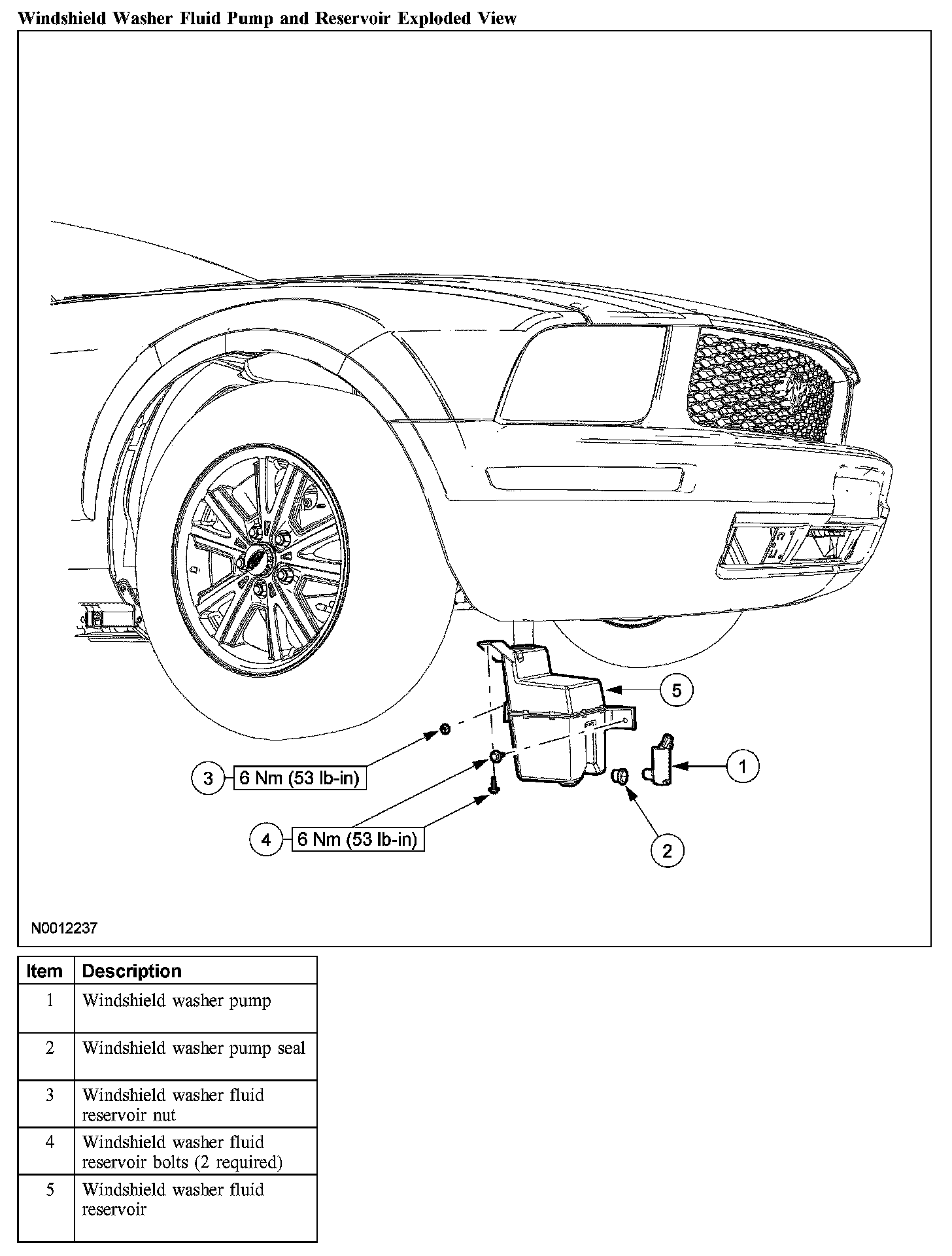 7. CAUTION: Do not operate the windshield washer pump prior to filling the windshield washer reservoir.
