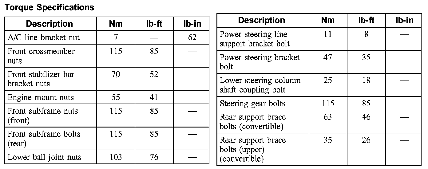 Torque Specifications: