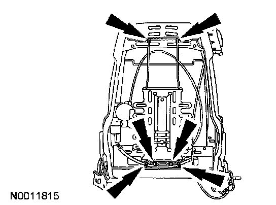 1. Position the seat to gain access to the seat track-to-floor nuts and bolts.