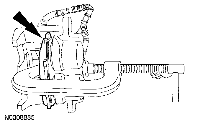 6. With the vehicle engine running, apply 89 133 N (20 30 lb) of pressure to the brakes for approximately 1 minute, to make sure the brake pads adhere to the caliper before any contamination can be introduced.