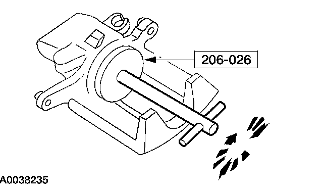 2. Using the special tool, compress the brake caliper piston into the brake caliper bore.