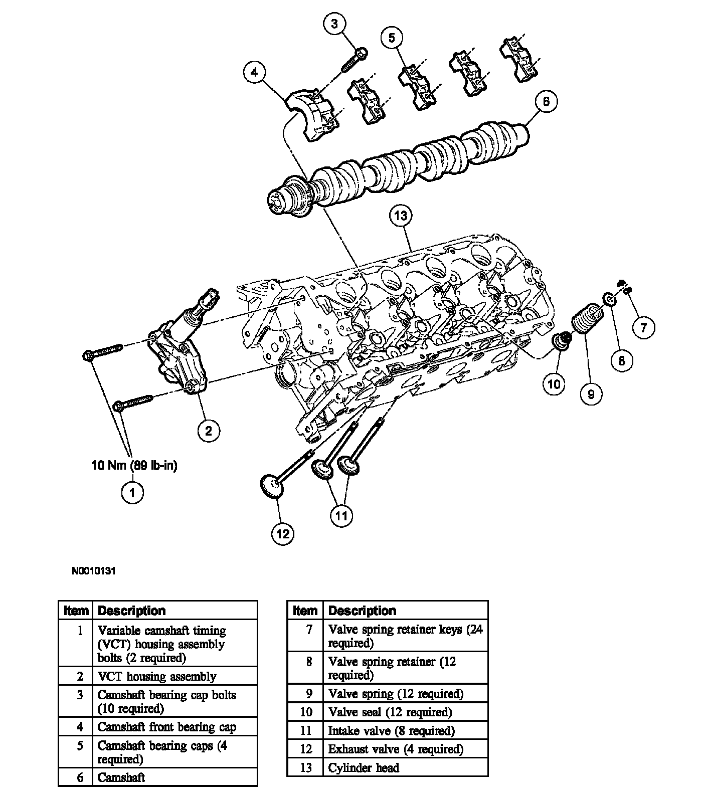 9. Install a new gasket, the Variable Camshaft Timing (VCT) housing and the bolts.