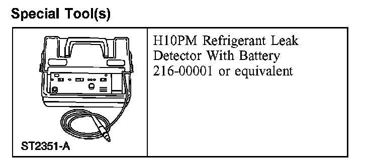 Leak test the refrigerant system using the Refrigerant Leak Detector. Follow the instructions included with the leak detector for handling and operation techniques.