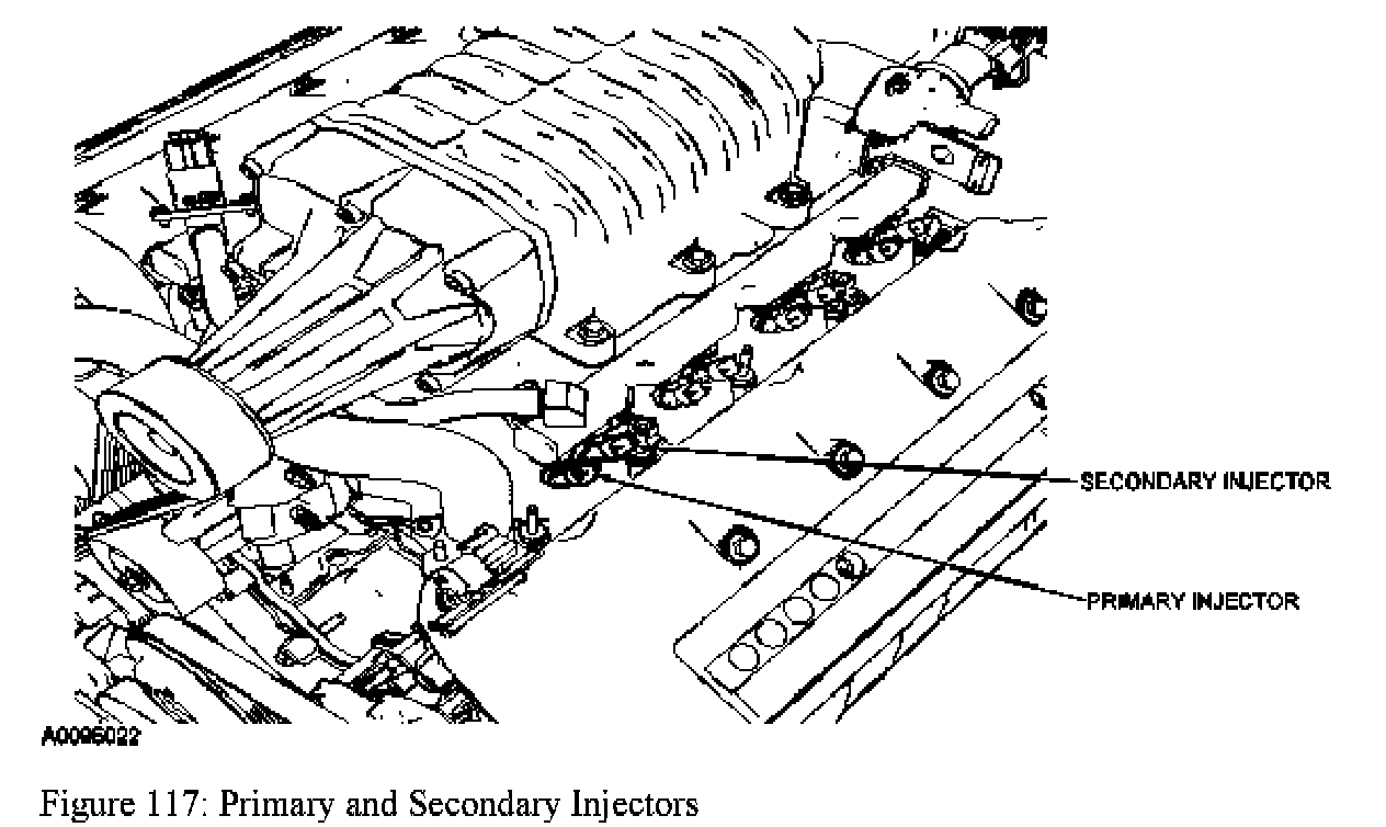 The dual-injection fuel delivery system uses 2 injectors per cylinder paired together. The primary injectors are slightly forward of the secondary injectors.