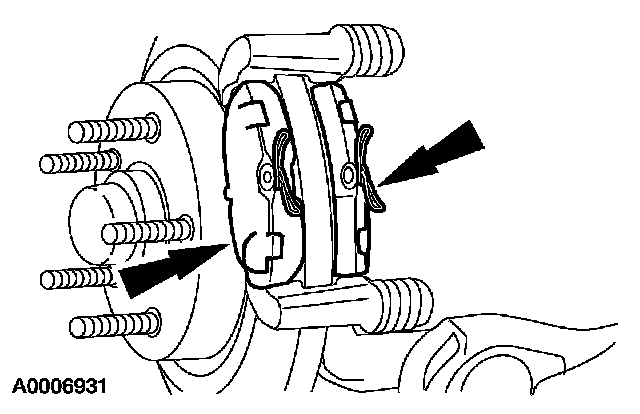 NOTE: It is not necessary to disconnect the brake hose from the brake caliper to remove the pads.