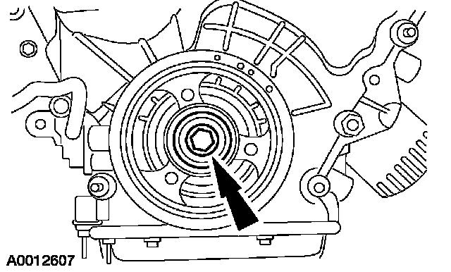 40. Rotate the drive belt tensioner clockwise and remove the coolant pump belt.