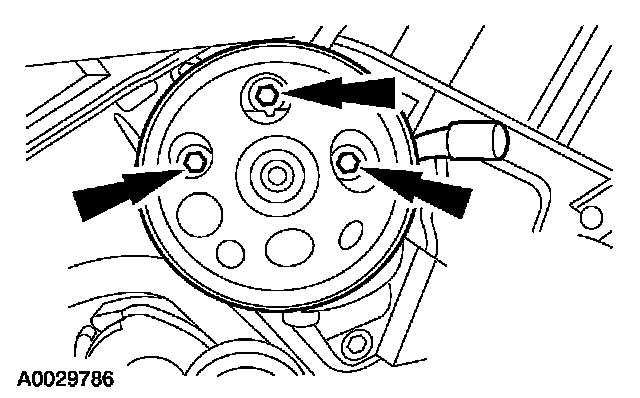 9. Remove the bolts and the power steering pump.