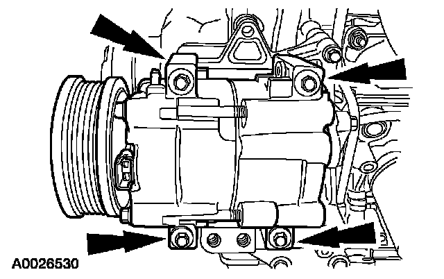 11. Remove the bolts and the A/C compressor.