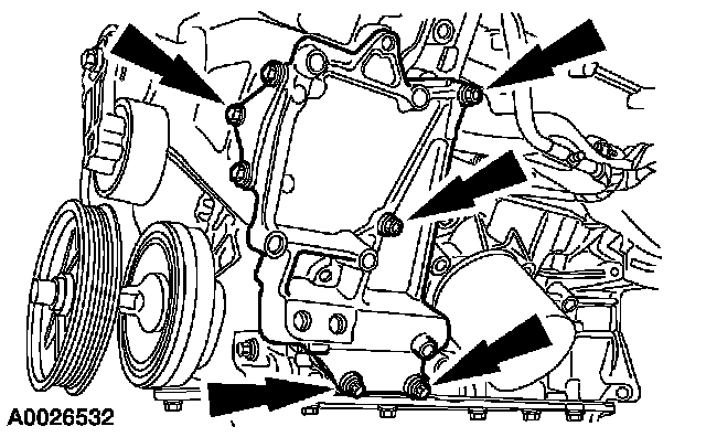 12. Remove the bolts and the A/C compressor bracket.