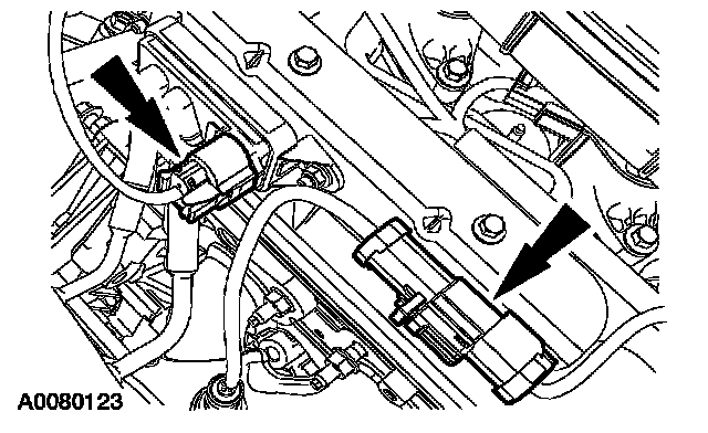 22. Disconnect the differential pressure feedback EGR sensor and the RH Heated Oxygen (H02S) sensor electrical connectors.