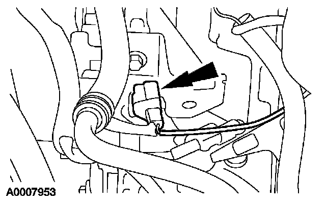 27. Disconnect and unclip the LH H02S electrical connector from the coolant tube