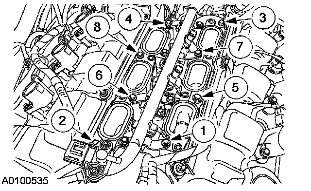 31. Remove the bolts in the sequence shown, and remove the lower intake manifold. Remove and discard the gaskets.