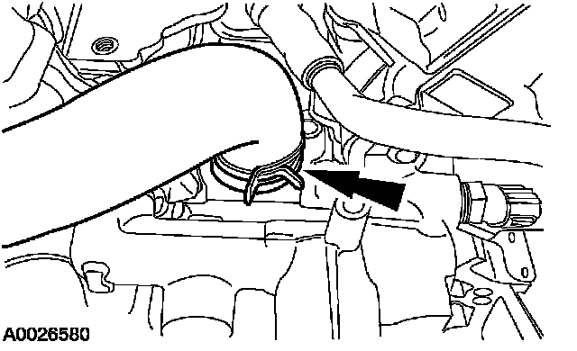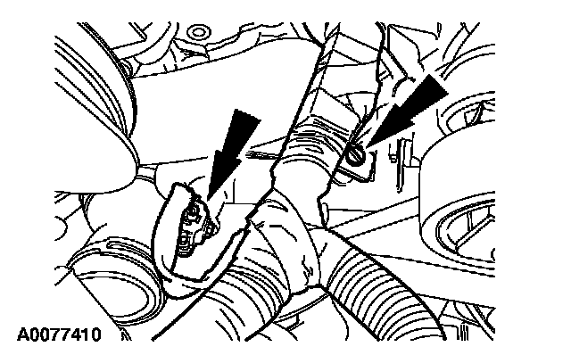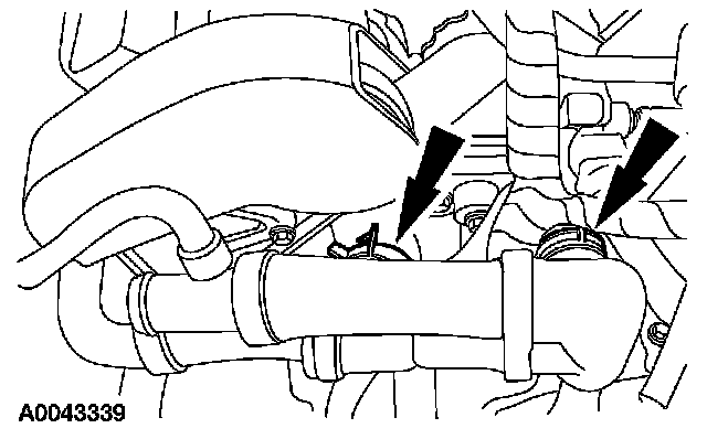 33. Disconnect the two hose clamps and remove the coolant tube assembly.