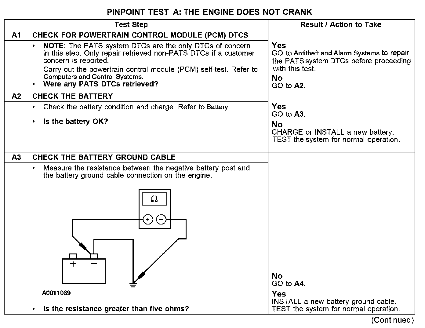 PINPOINT TEST A: THE ENGINE DOES NOT CRANK
