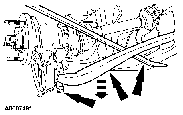 6. Remove the nut, bolt and lower arm. Discard the nut.
