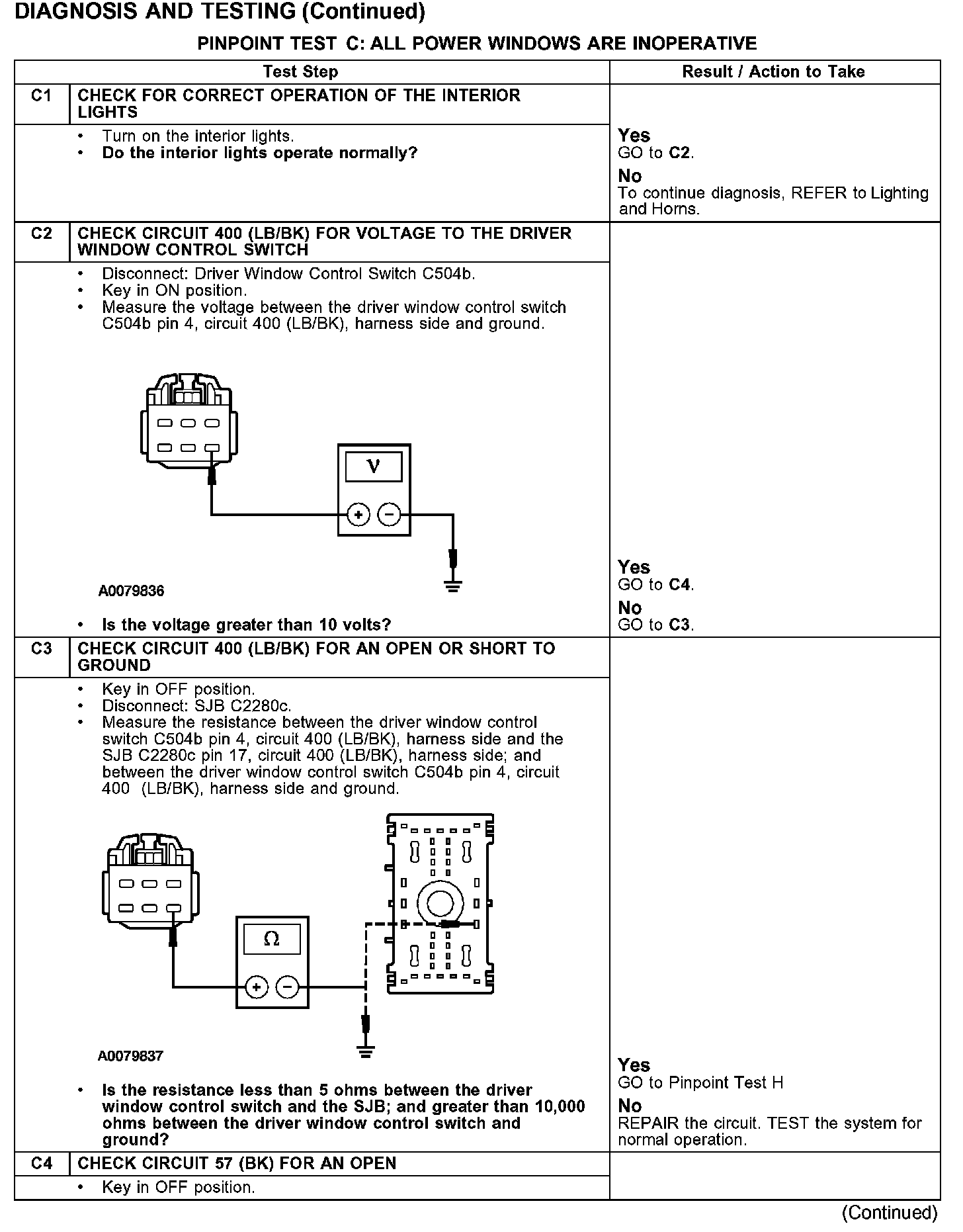 PINPOINT TEST C: ALL POWER WINDOWS ARE INOPERATIVE