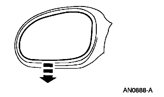 1. Position the inner edge or the exterior rear view mirror glass to its maximum travel.