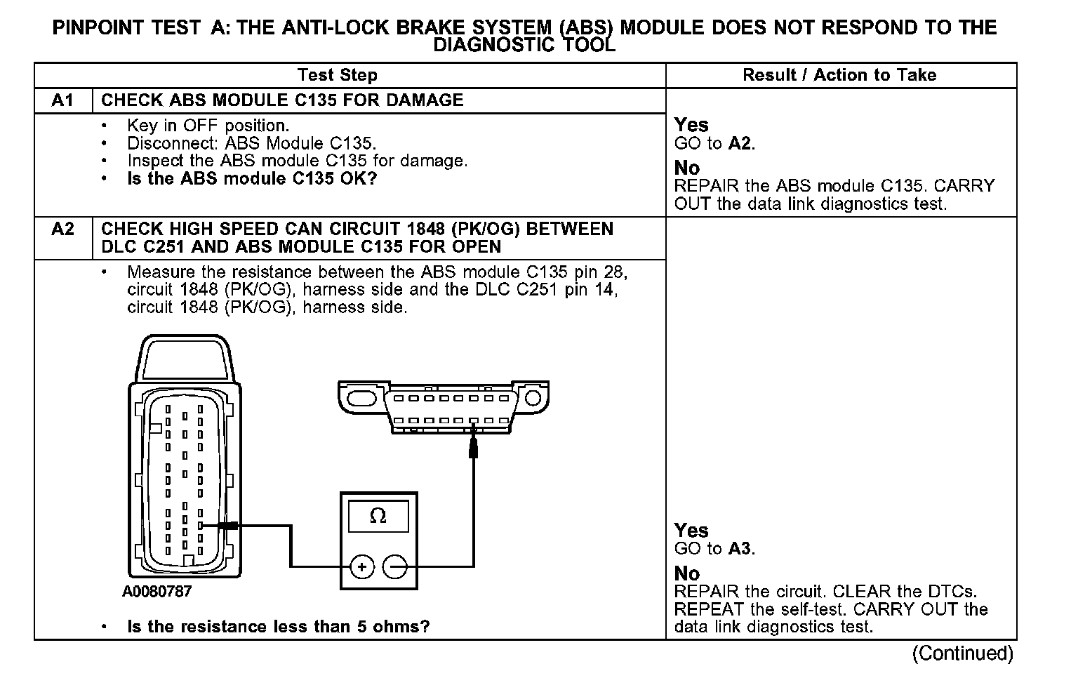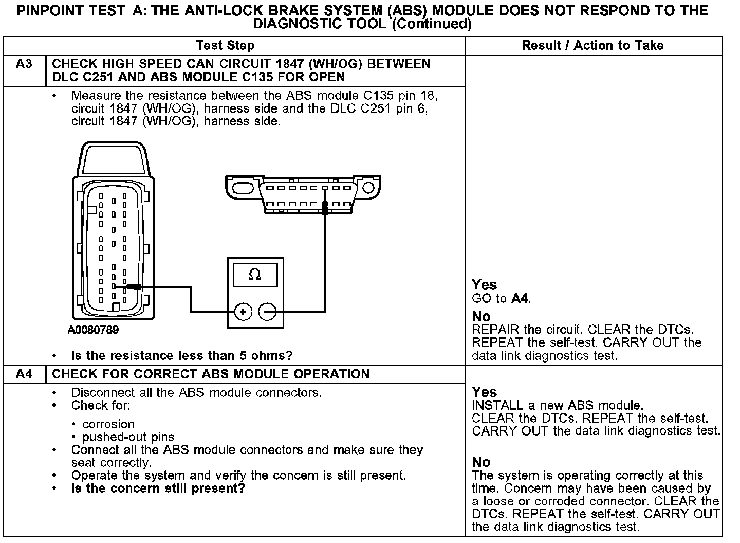 Test A: The Anti-Lock Brake System (ABS) Module Does Not Respond to the Diagnostic Tool