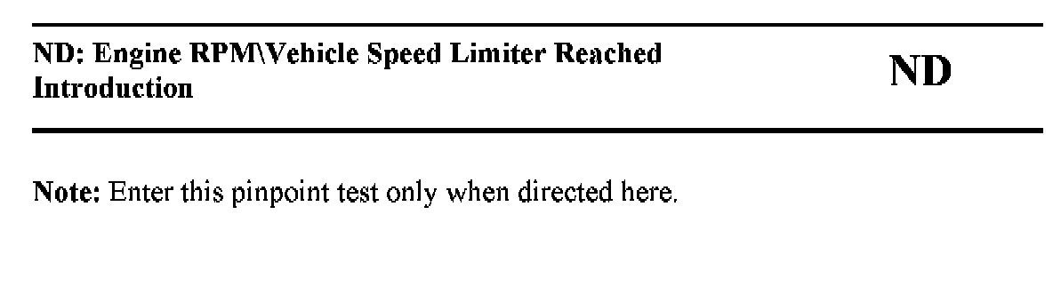 PINPOINT TEST ND: ENGINE RPM\VEHICLE SPEED LIMITER REACHED