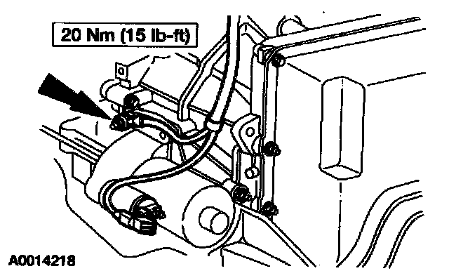 9. Remove the starter motor positive cable nut and disconnect the B+ cable. Remove the battery cable harness assembly from the vehicle.