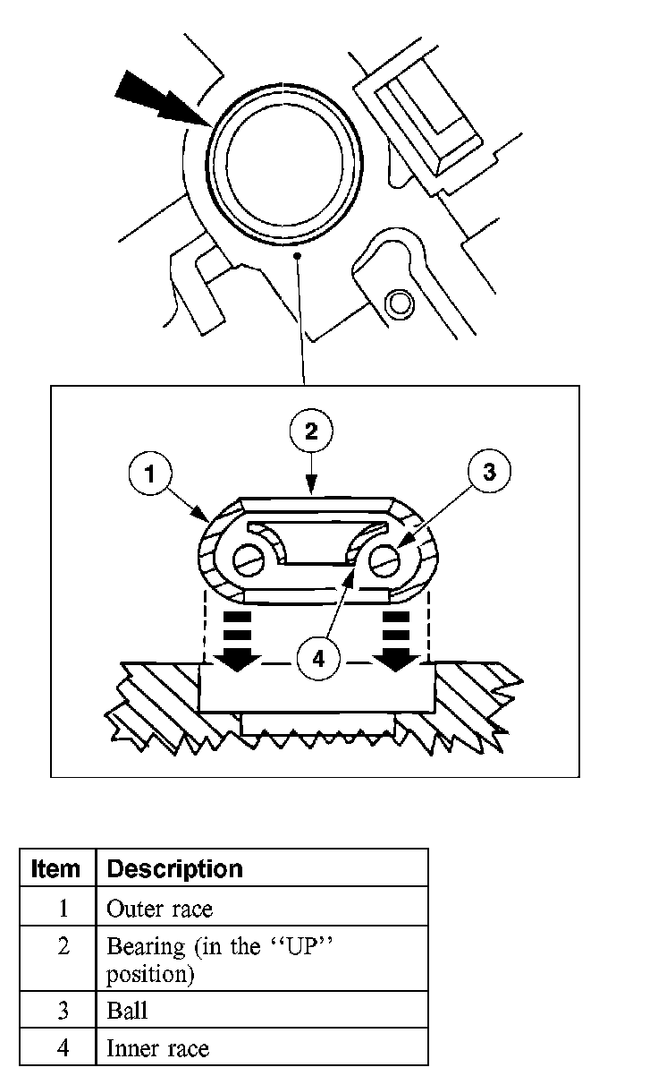 4. NOTE: The "UP" position of the bearing must be facing forward, toward the engine.