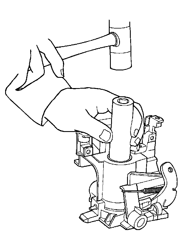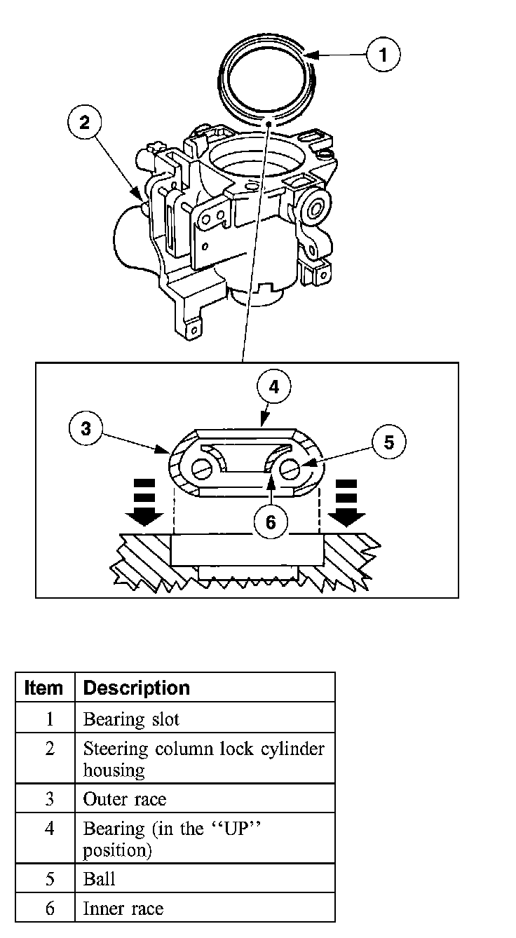 Using an appropriate bearing installer or socket, install the steering column upper bearing on the steering column lock cylinder housing.