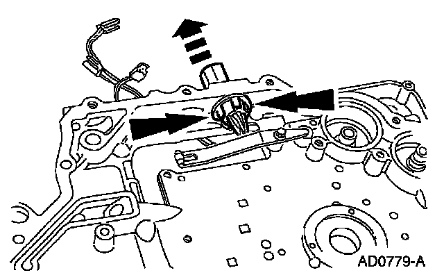 3. Remove the bolt and the manual valve detent spring.