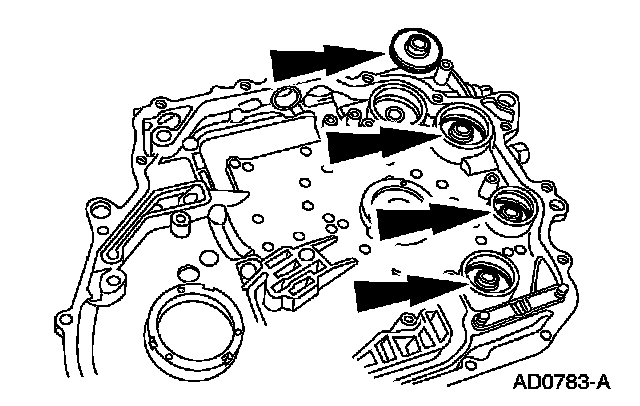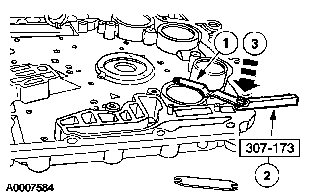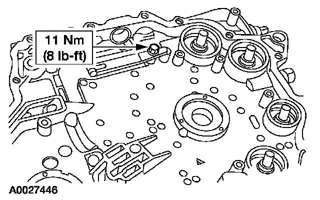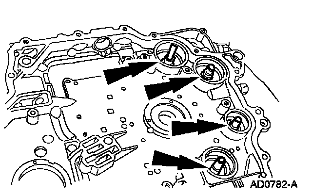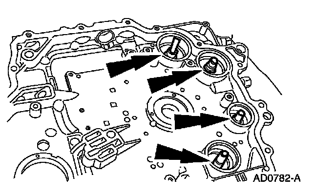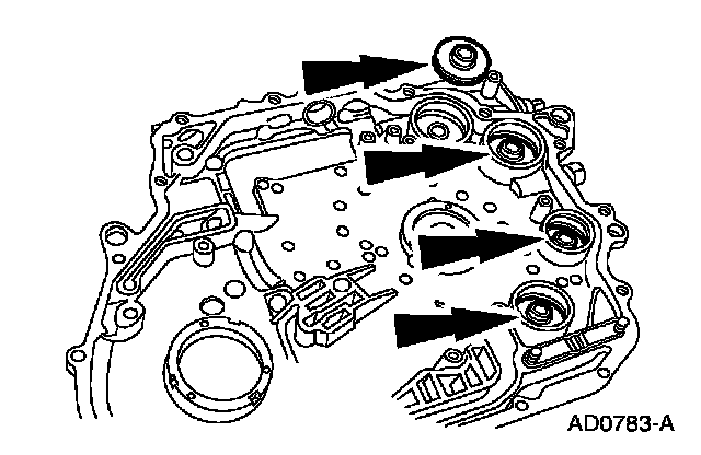 7. NOTE: The use of petroleum jelly will hold the accumulator piston shafts in place while assembling the chain cover.