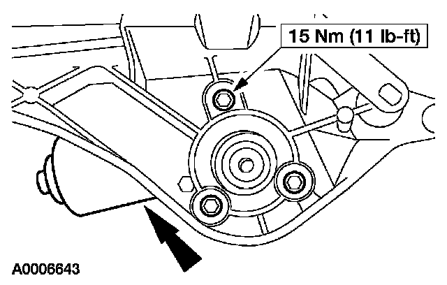 2. Remove the bolt and the windshield wiper motor operating arm from the motor.