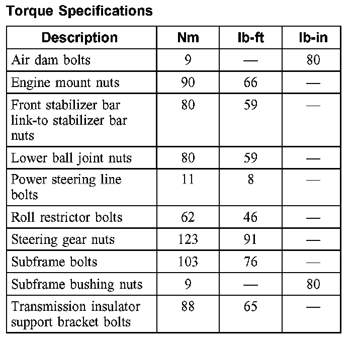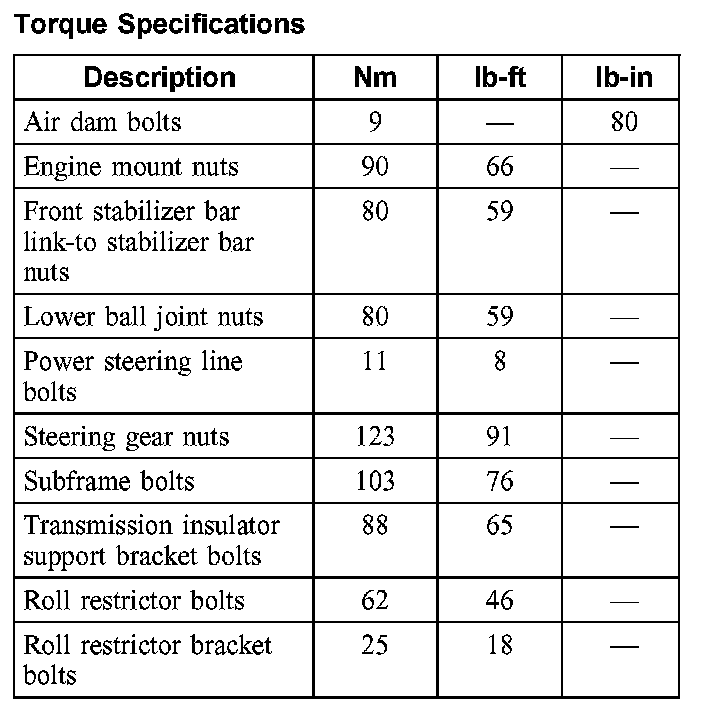 Torque Specifications: